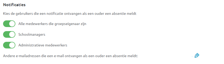 Wie krijgt er bericht wanneer er een ouder een absentie invult?